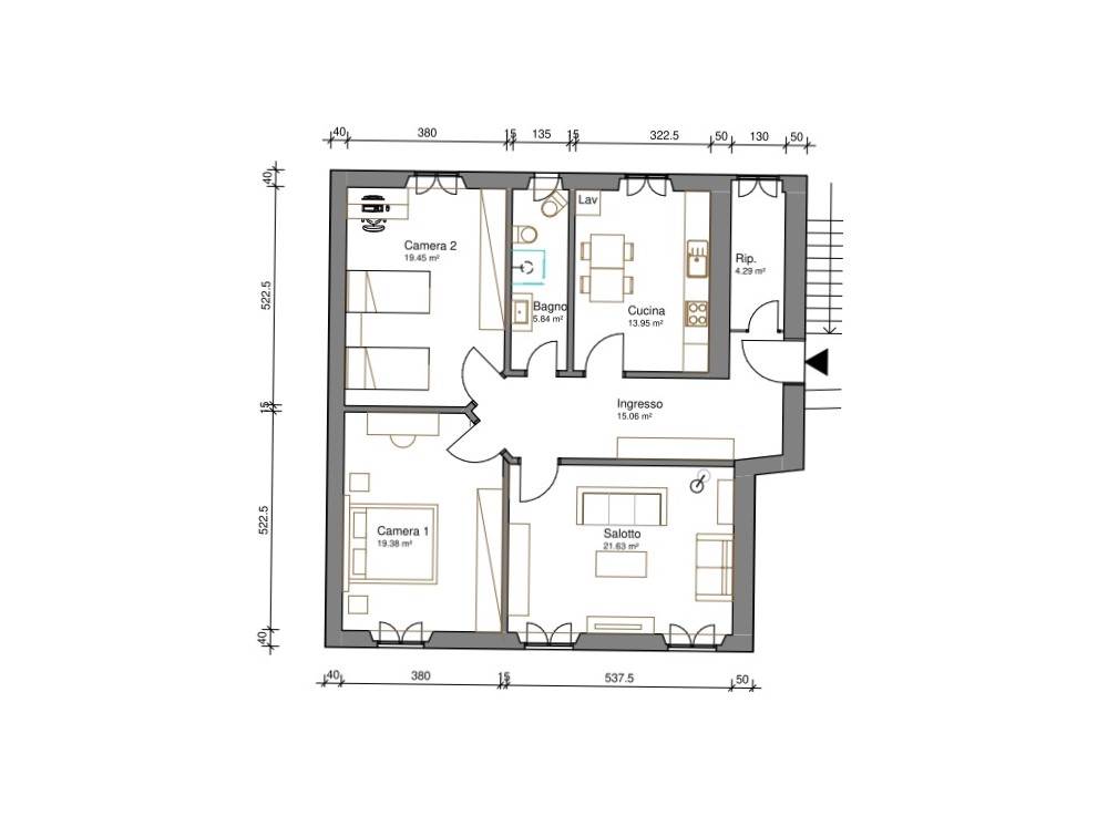 L'immobile si presenta in generale in buono stato di manutenzione e conservazione. Volendo offre anche la possibilità di realizzare due appartamenti, entrambi di due 2 vani composti da: un'ampia zona giorno, una camera matrimoniale, un servizio e balcone..